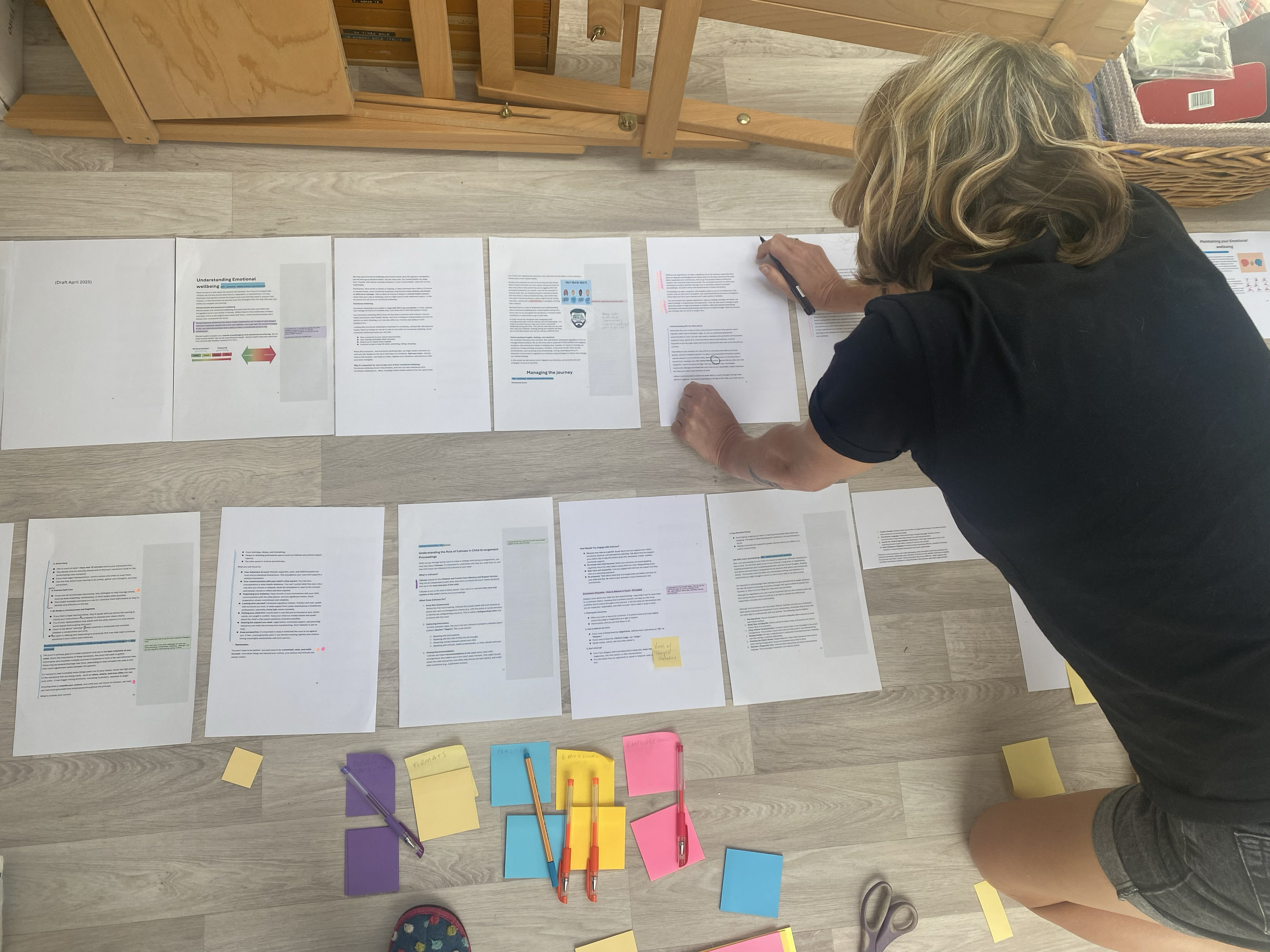 Post-meeting we spent a morning in Rachel’s loft room spreading out the content and regrouping elements where needed. This helped us think through whether a static toolkit was actually the best option or whether having content available in separate documents would be more helpful.